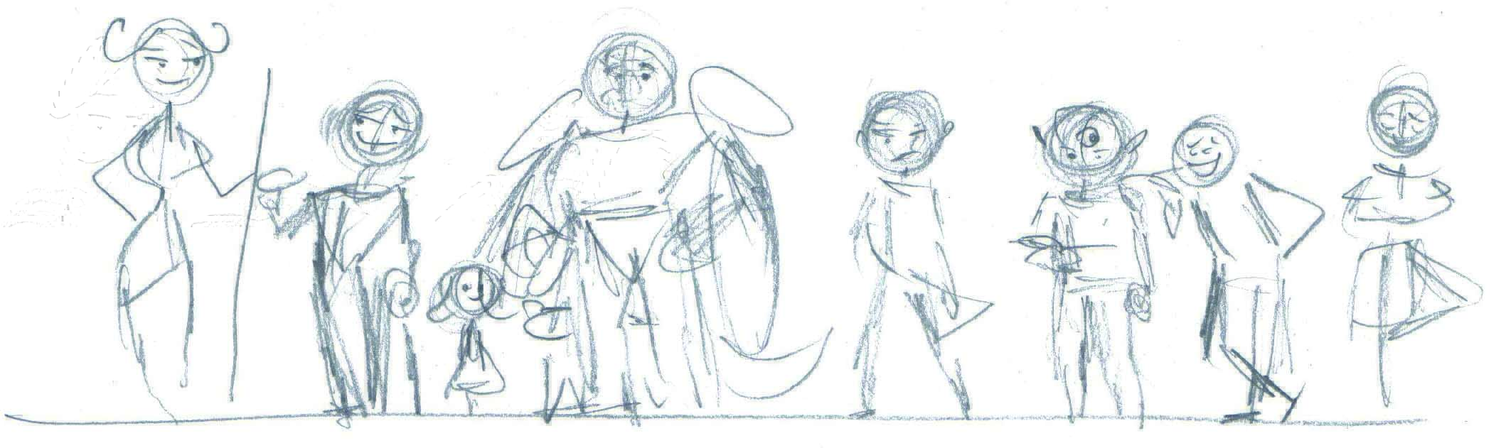 Von ganz rudimentären Skizzen (durch die ich meist erst einmal schnell eine Idee festhalte), bis hin zu recht ausgearbeiteten Skizzen findet sich in meinen Skizzen-und Notizbüchern eine breite Auswahl. Hier ein kleiner Einblick in meine Skizzensammlung: