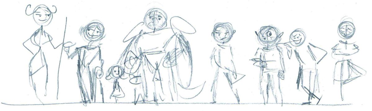 Von ganz rudimentären Skizzen (durch die ich meist erst einmal schnell eine Idee festhalte), bis hin zu recht ausgearbeiteten Skizzen findet sich in meinen Skizzen-und Notizbüchern eine breite Auswahl. Hier ein kleiner Einblick in meine Skizzensammlung: